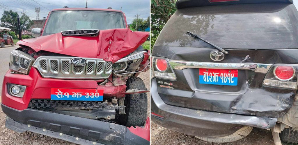 सुदूरपश्चिमका दुई मन्त्री सवार गाडी आपसमा ठोक्किँदा क्षति