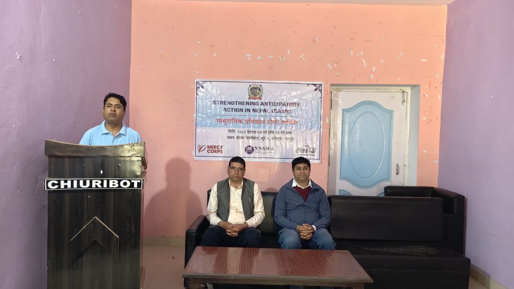 मर्सीकोर नेपाल, नेपाल राष्ट्रिय समाज कल्याण सङ्घ (एनएनएसडब्लुए) र द कोकाकोला फाउन्डेसनद्वारा सञ्चालित ‘नेपालमा पूर्वानुमानमा आधारित पूर्वकार्यको सुदृढीकरण’ (सान) परियोजना अन्तर्गत उक्त तालिम सञ्चालन गरिएको हो। तालिममा चुरे गाउँपालिका वडा नम्बर -३ र -६ अन्तर्गतका कालिका, पिपल चौतारा, शान्तिनगर र लेकबेसी सामुदायिक विपद् व्यवस्थापन समितिका ६–६ जना गरी कुल २४ जनाको सहभागिता रहेको छ।